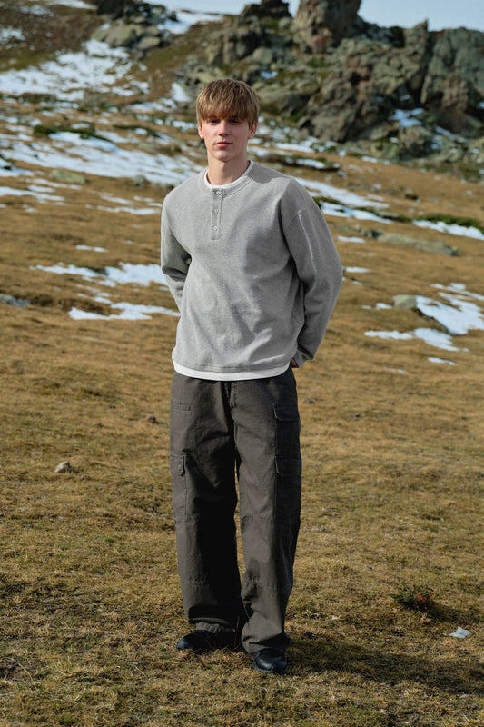 Layered Henley Waffle Long Sleeve Tee
