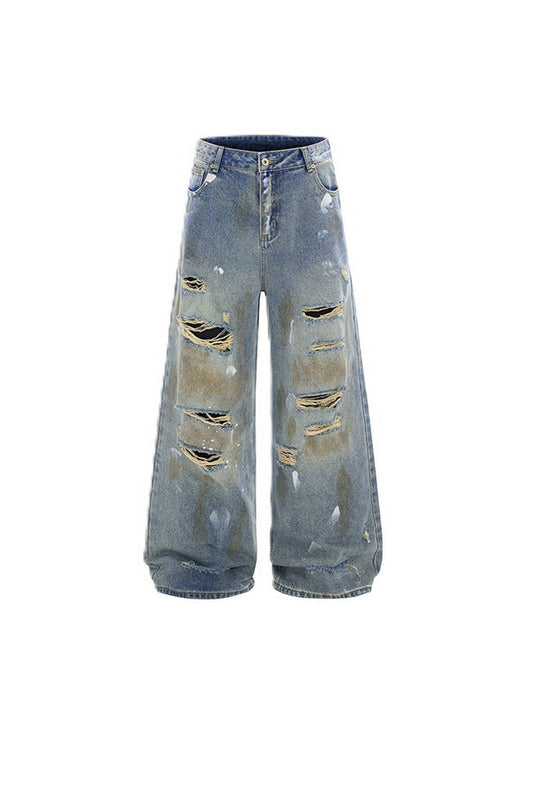 Splatter Ripped Straight Jeans