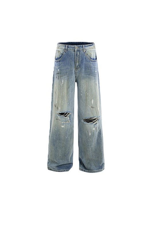 Splatter Ripped Loose Jeans