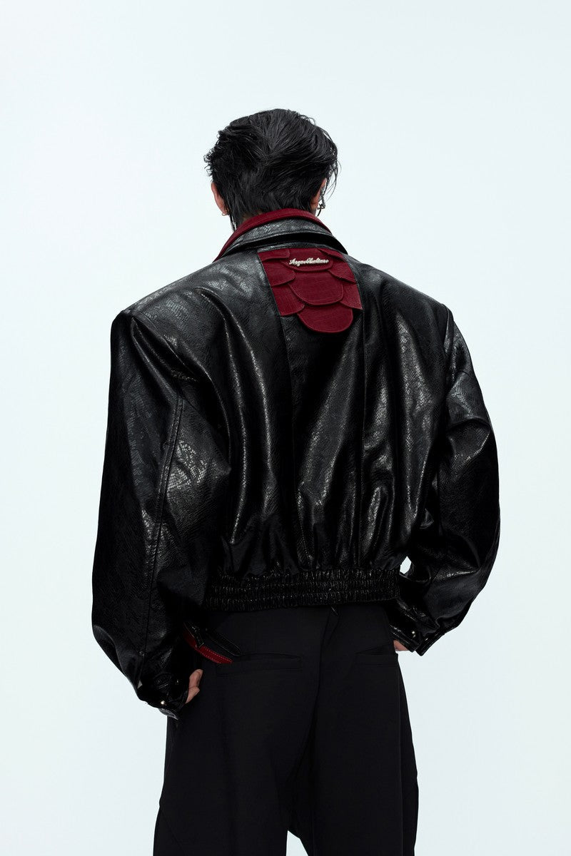 Glossy Snake Print Leather Jacket