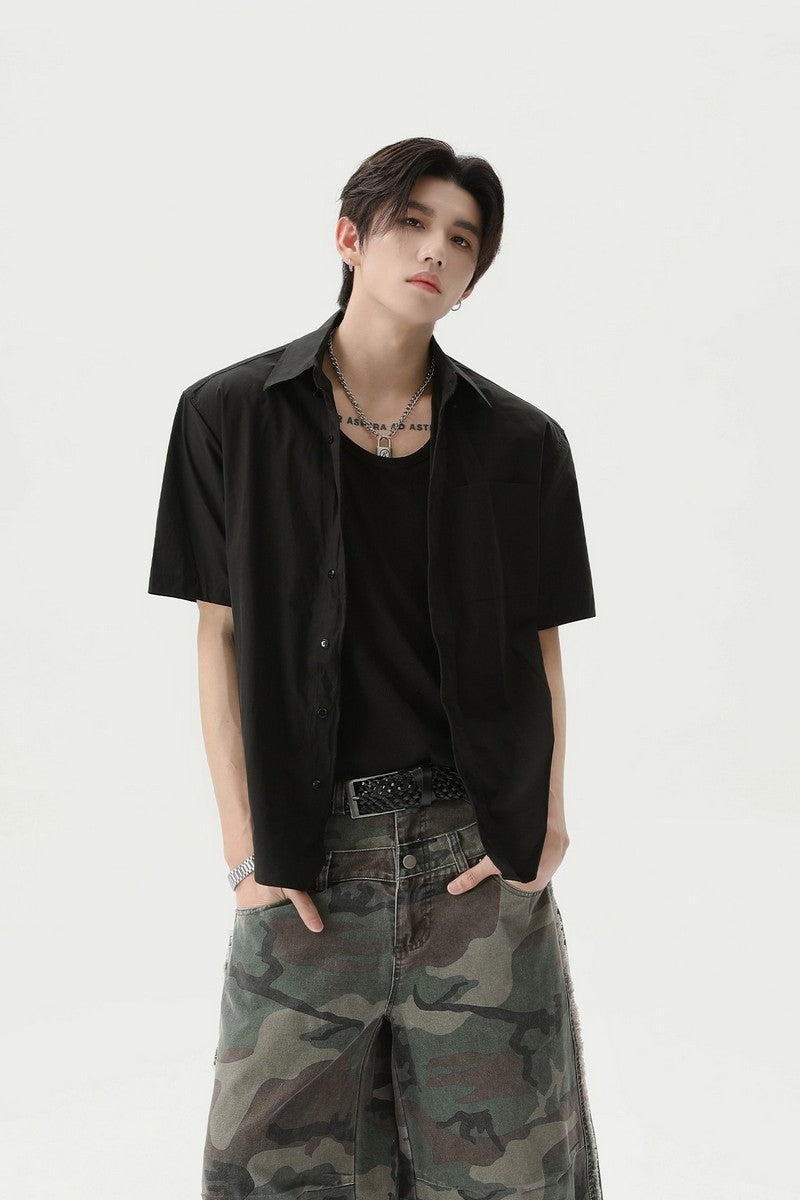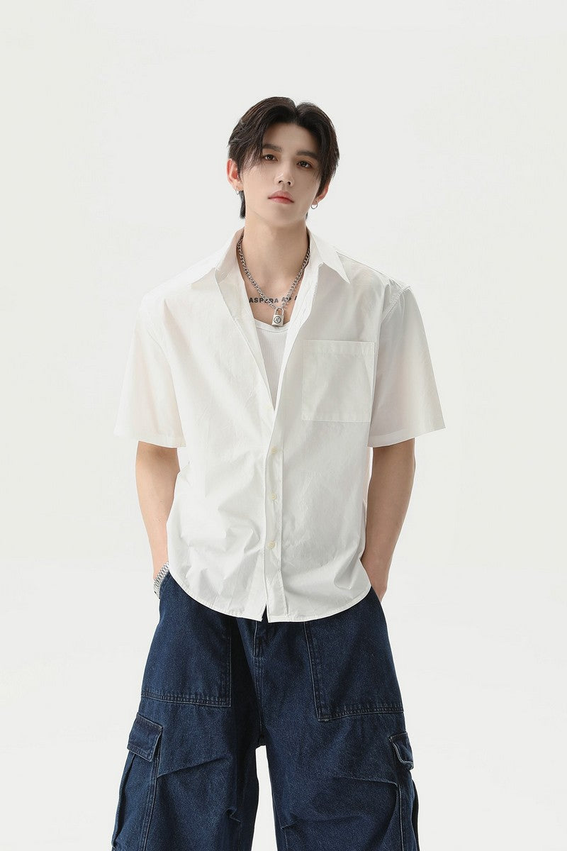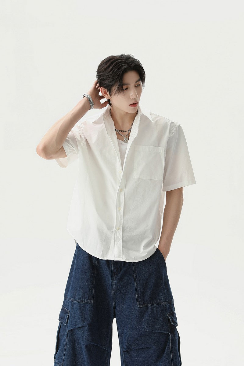 Textured Pleated Short Sleeve Shirt