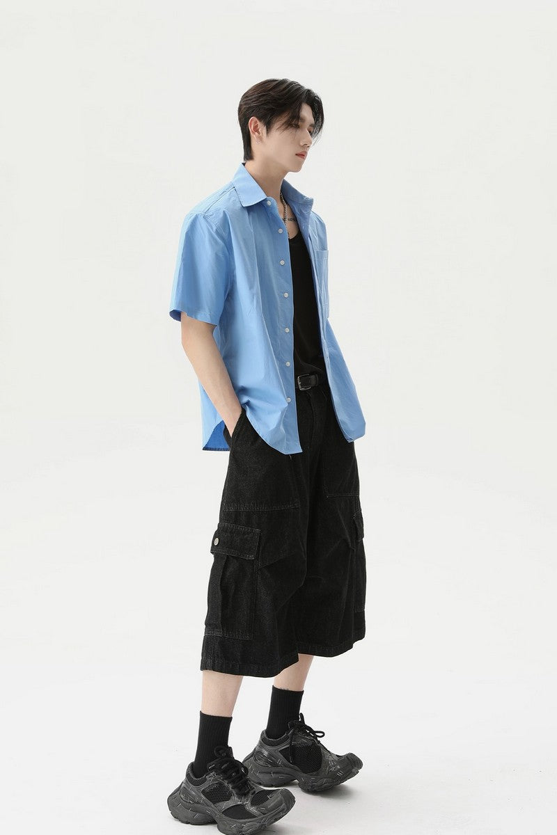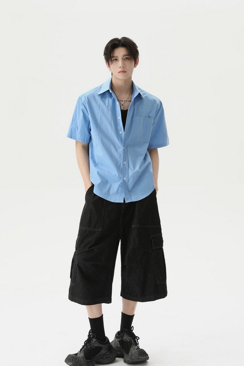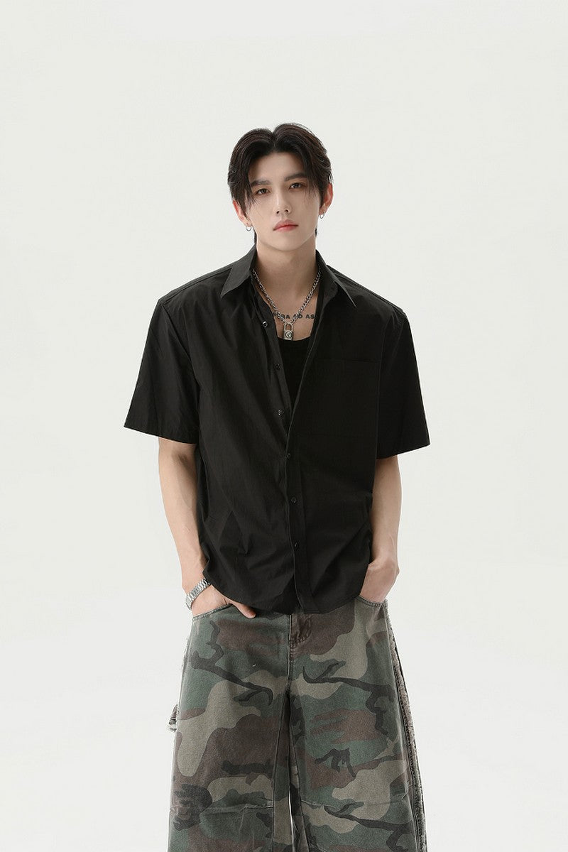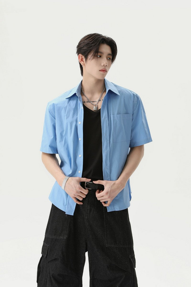 Textured Pleated Short Sleeve Shirt